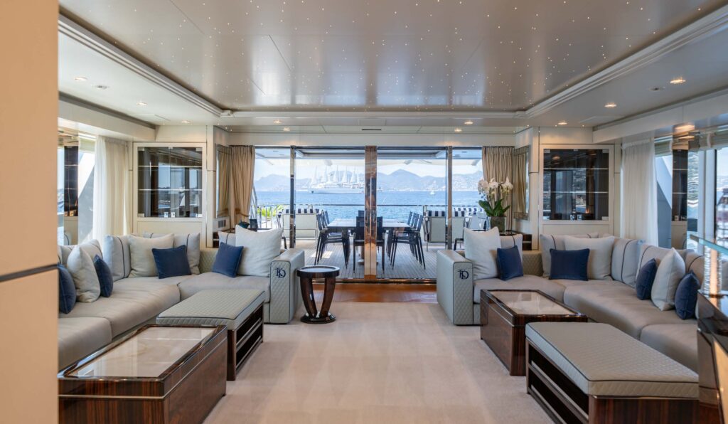 ALULIM is a 53-meter Sanlorenzo superyacht (2018, refitted 2023) that represents the pinnacle of the Italian yard’s craftsmanship. Extended beyond the standard 52Steel series, she’s the only Sanlorenzo built to ABS « Comfort (Y) » class, delivering exceptionally low noise and vibration levels. Powered by twin MTU 12V 4000 diesel engines producing 1,900 HP each, she reaches 18 knots maximum with a cruising speed of 12 knots and a remarkable 4,000 nautical mile range. Accommodating up to 12 guests across 6 luxuriously appointed cabins with materials including silk wallpaper, ebony veneers, mother of pearl inlays, and Fendi furniture throughout, ALULIM offers a floating tender garage that transforms into a beach club, glass-bottom pool, Technogym-equipped gymnasium, and advanced AV/IT including Starlink connectivity. VAT paid and recently completing her 5-year class survey with fresh paintwork, she comes turn-key with an exclusive 7.5-meter limousine tender fitted with Bentley lights—a true statement yacht for the most discerning owner.