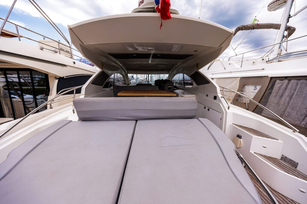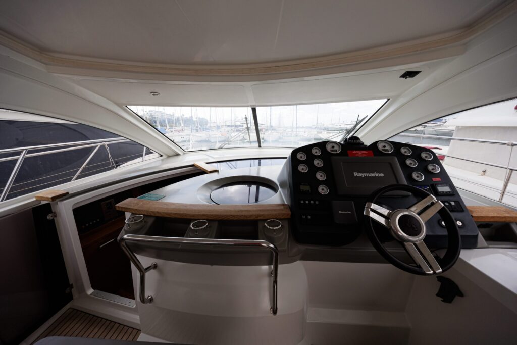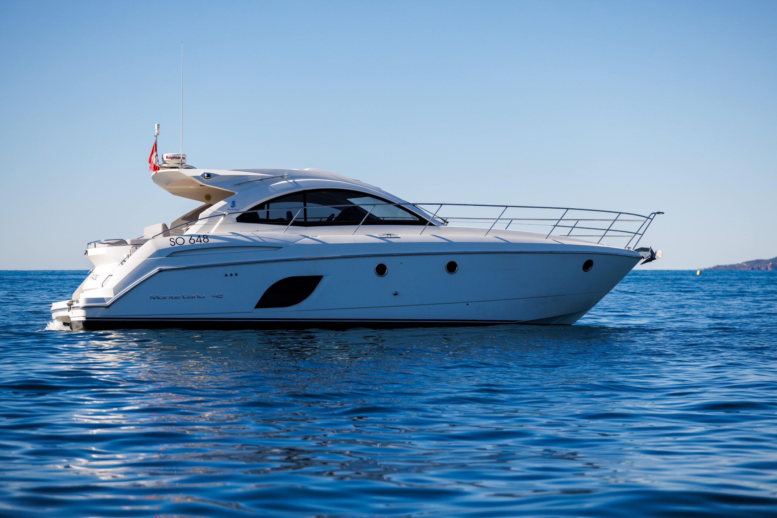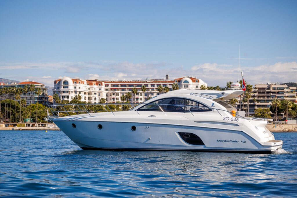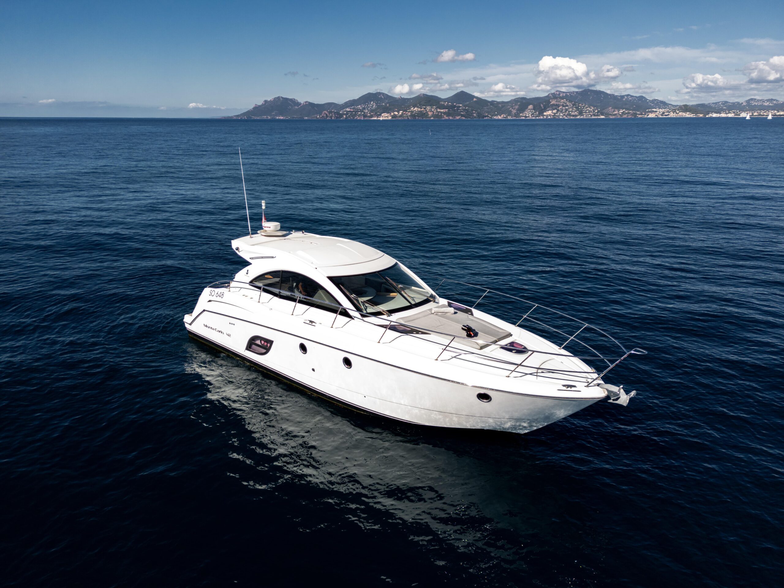 The Monte Carlo 42 is a 14-meter sport cruiser (2012) that showcases Bénéteau’s renowned AIRSTEP® hull technology—delivering exceptional performance with remarkable fuel efficiency. Powered by twin Volvo Penta D6-370 engines, she reaches a top speed of 34 knots with electric responsiveness at the helm and a cruising speed of 25 knots. Accommodating up to 12 guests by day and 4 overnight across two cabins (one double, one twin), the Monte Carlo 42 offers a full-beam master cabin with impressive headroom and elegant finishes throughout. Her intelligent layout borrows from the larger Monte Carlo 47, combining sporty handling with genuine comfort—ideal for coastal cruising, weekend escapes, and entertaining in style along the Riviera or Mediterranean.