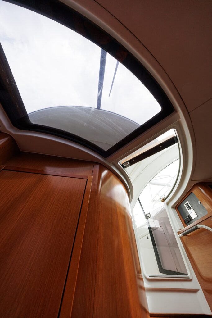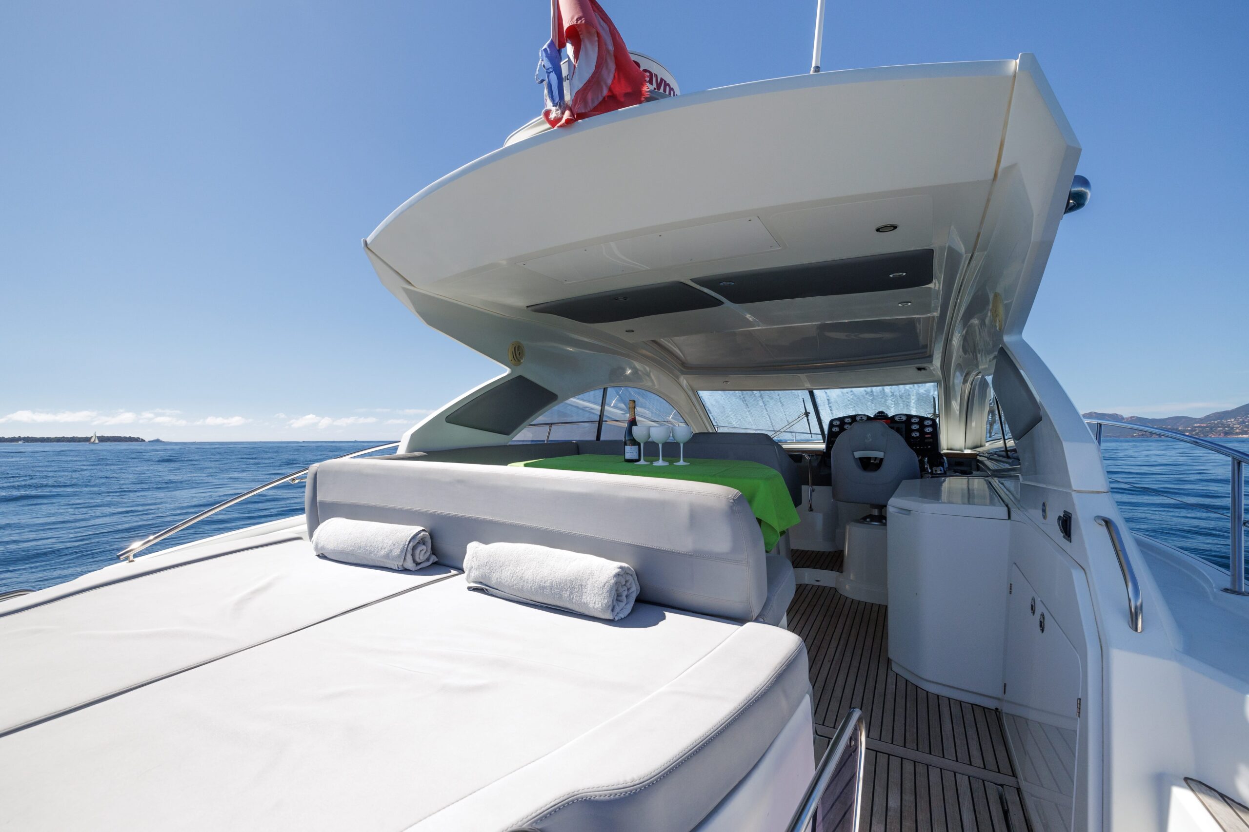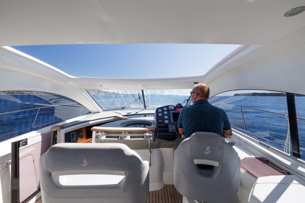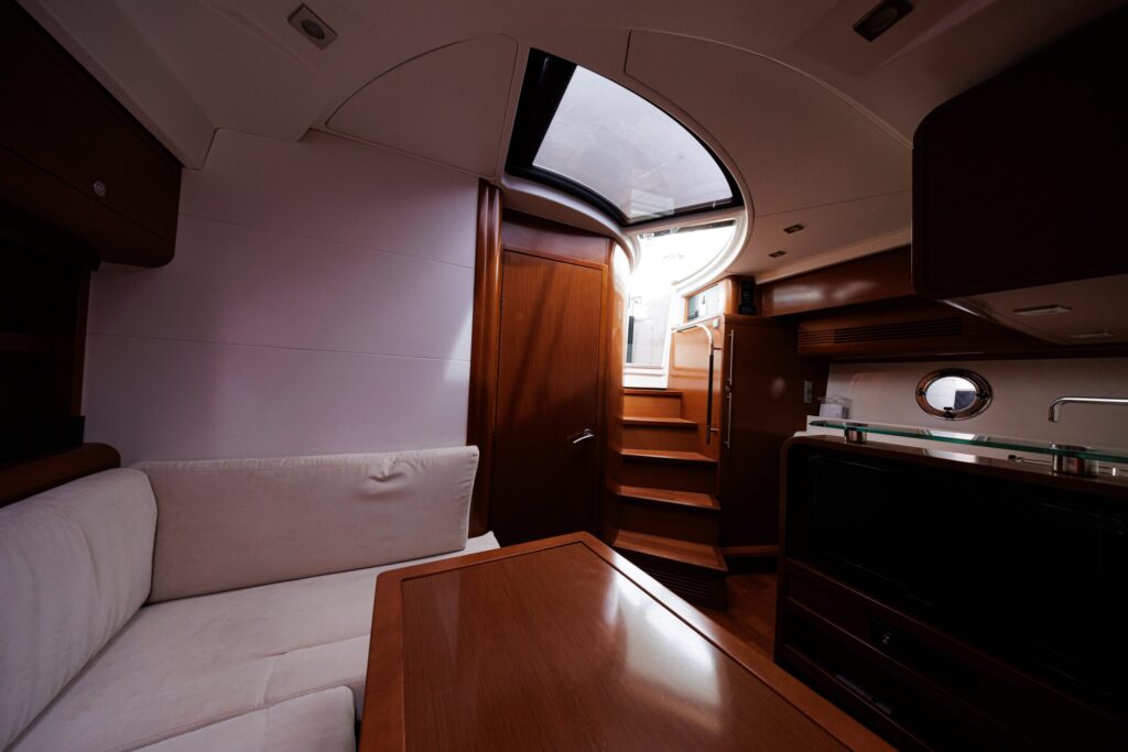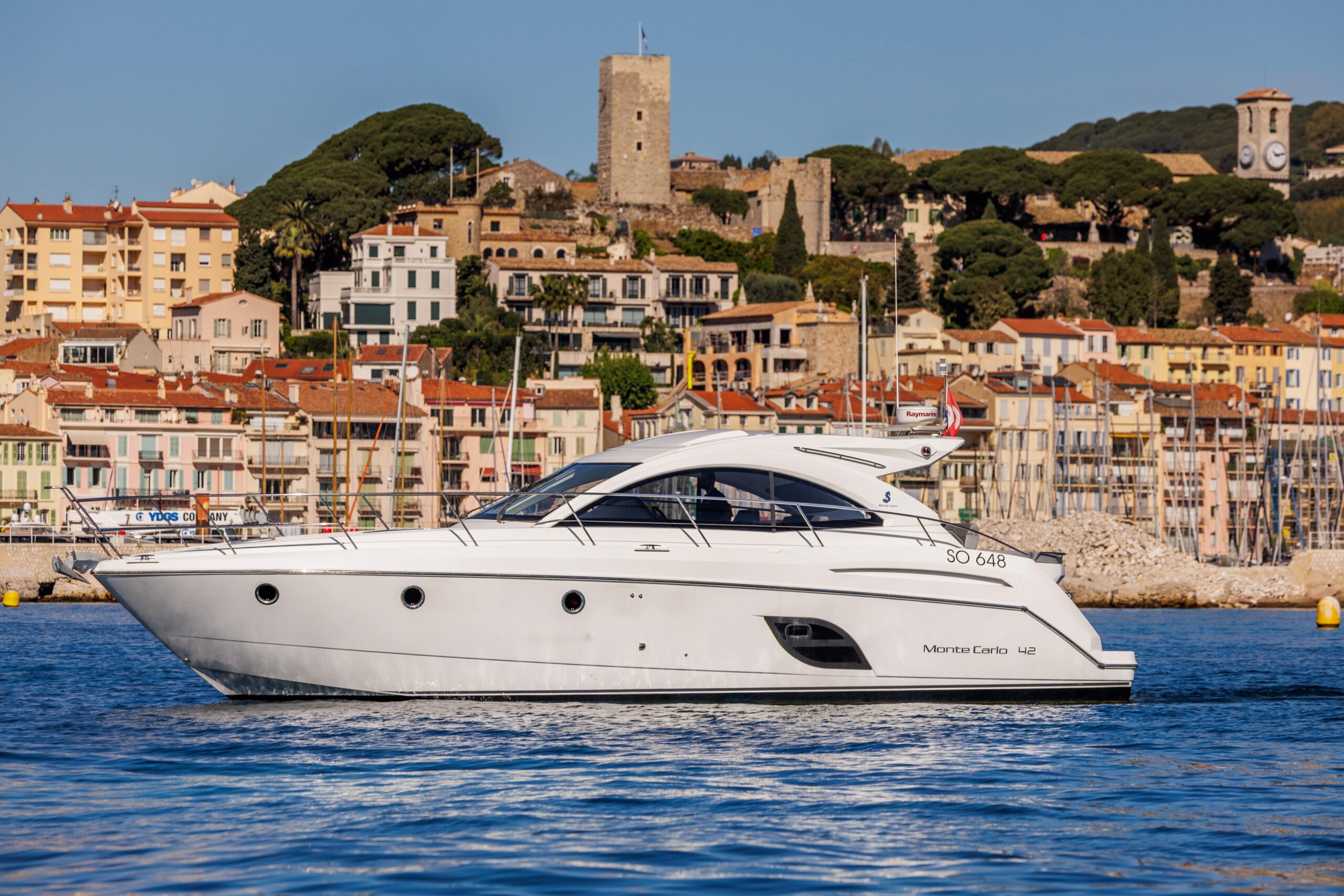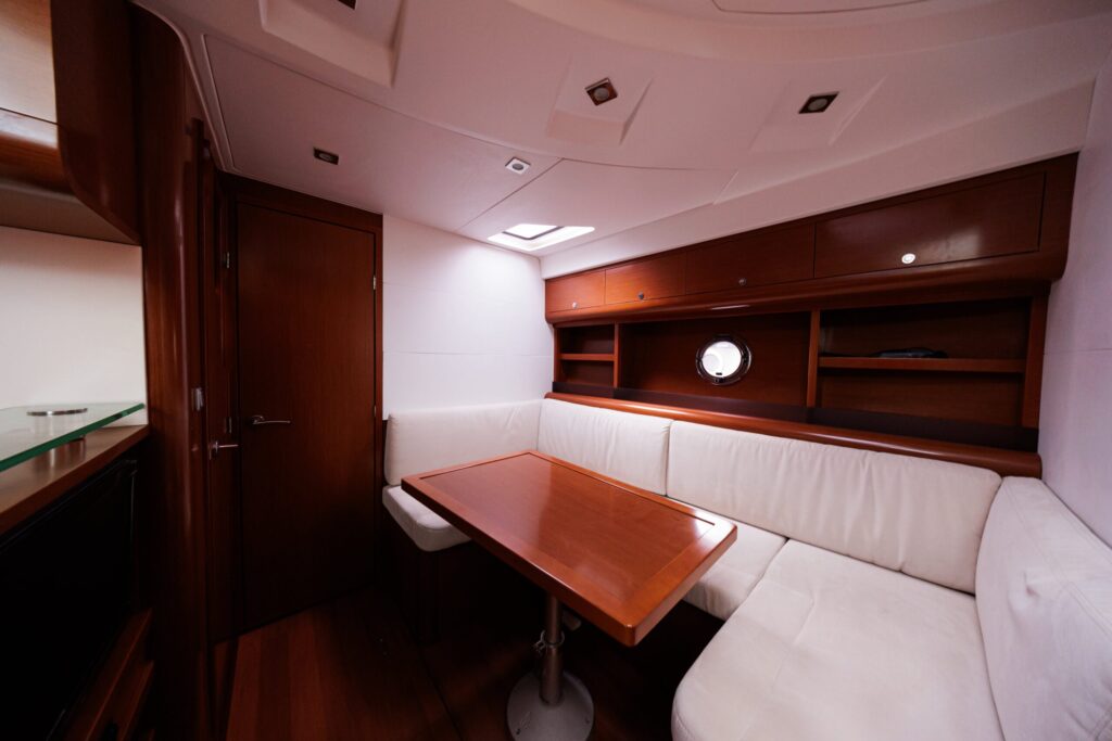 The Monte Carlo 42 is a 14-meter sport cruiser (2012) that showcases Bénéteau’s renowned AIRSTEP® hull technology—delivering exceptional performance with remarkable fuel efficiency. Powered by twin Volvo Penta D6-370 engines, she reaches a top speed of 34 knots with electric responsiveness at the helm and a cruising speed of 25 knots. Accommodating up to 12 guests by day and 4 overnight across two cabins (one double, one twin), the Monte Carlo 42 offers a full-beam master cabin with impressive headroom and elegant finishes throughout. Her intelligent layout borrows from the larger Monte Carlo 47, combining sporty handling with genuine comfort—ideal for coastal cruising, weekend escapes, and entertaining in style along the Riviera or Mediterranean.